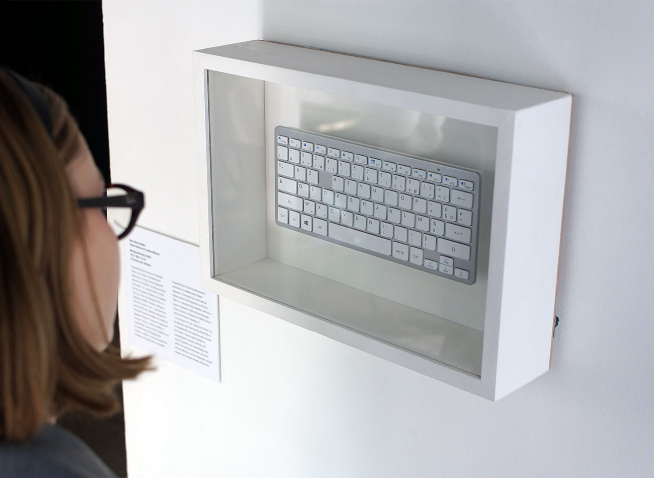 A deliberately flawed physical keyboard, Disparition[s] operates as a literary device for conceptual writing. The work directly references Oulipian writer Georges Perec’s most famous novel, while invoking the postcolonial, the feminine, and the psychoanalytic Other—the e/eux (them)—by rendering their absence conspicuous.