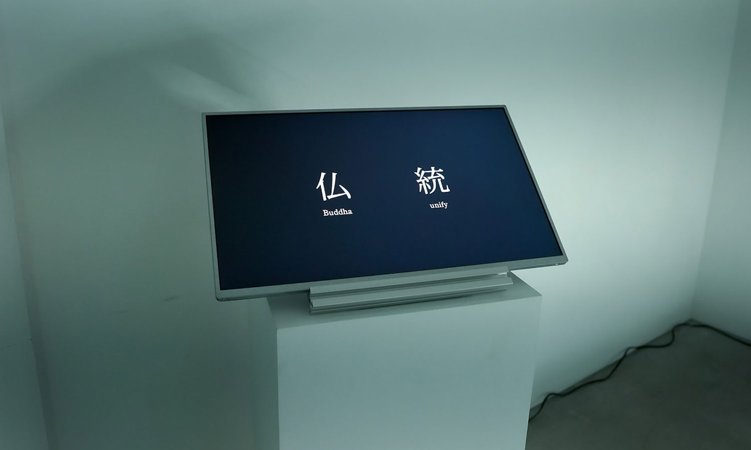 The work randomly pairs kanji from two distinct lexicons: one drawn from the imagery of haiku and classical Japanese poetics, the other from the contemporary vocabulary of computation and digital technology. On screen, the characters spin like a slot machine before settling into compounds — sometimes profound, sometimes humorous, often uncanny — that appear and dissolve in an endless recombination.