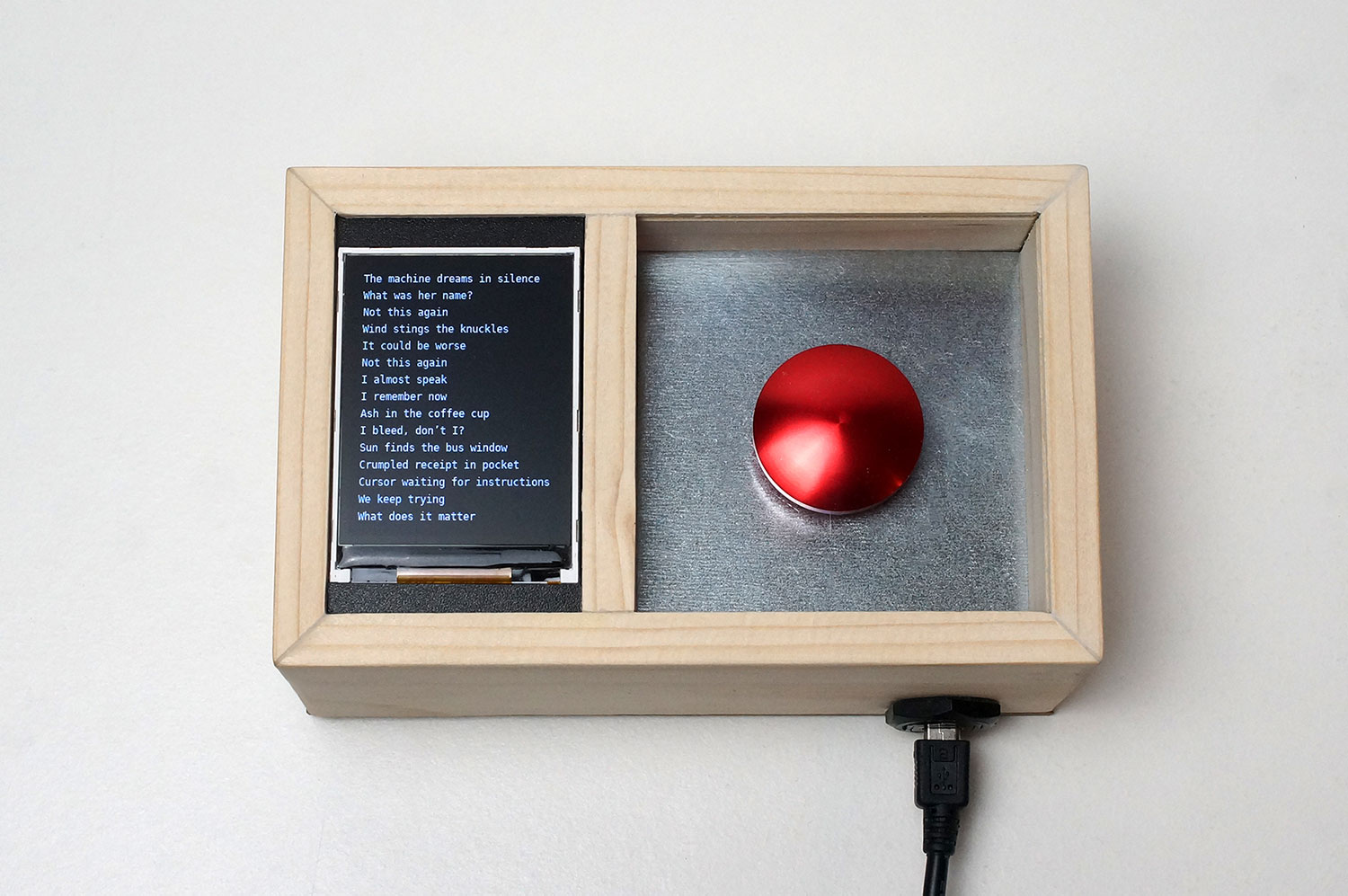 Panic Poetry is a permutational poem of 180 lines generated with AI, creating 3.7 nonillion possible combinations. This generative, combinatory work reflects on today’s textual overabundance, evoking the frustration, urgency, and overwhelm of facing endless streams of information. Using AI highlights how digital tools amplify this deluge. The work references Raymond Queneau’s Cent Mille Milliards de Poèmes (Oulipo), emphasizing both the creative potential of recombination and the participatory role of the reader or collector in shaping the work.
